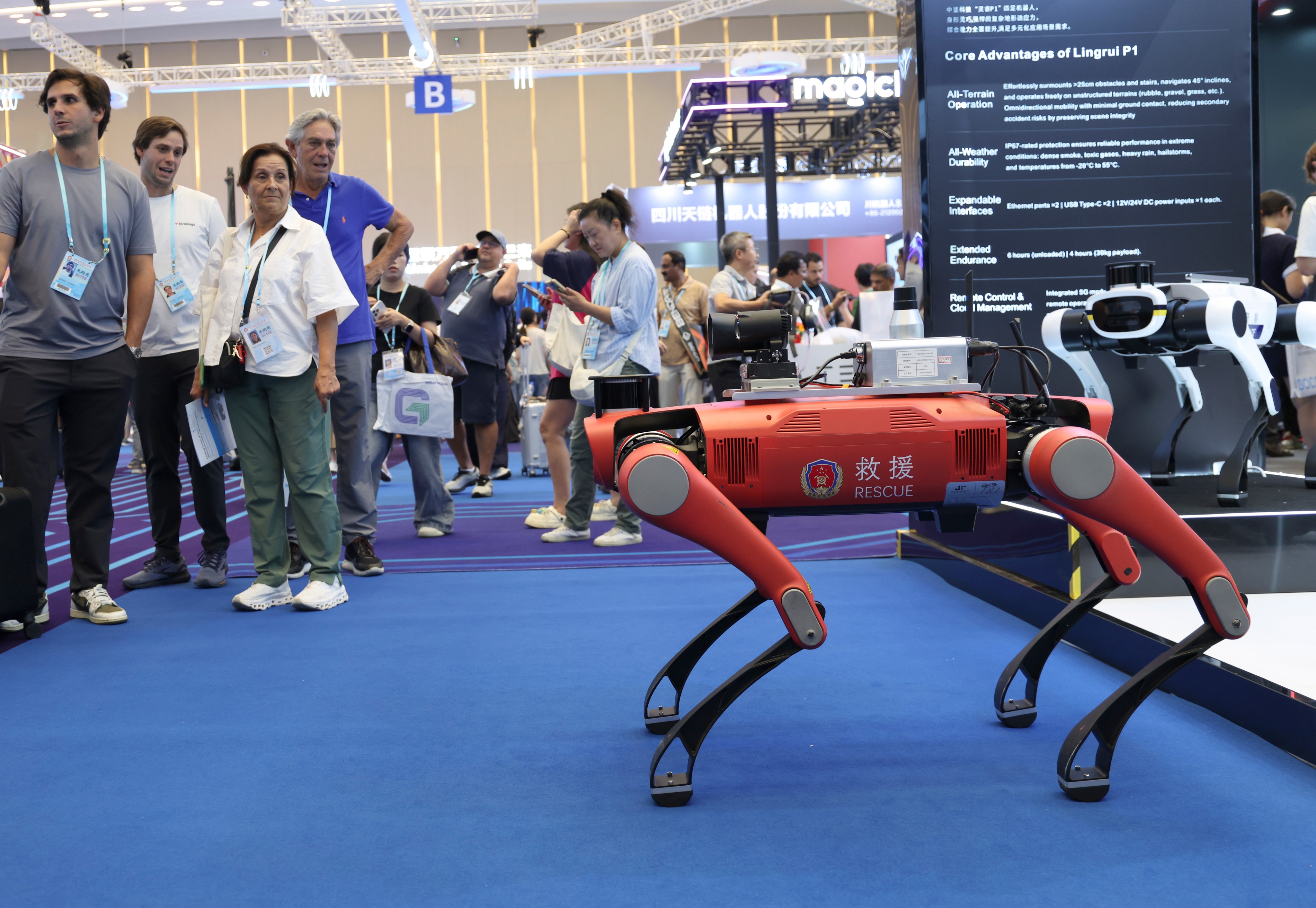 在服务机器人专区,唱歌跳舞的陪伴型机器人、AI识别筋膜结构的按摩机器人、上墙下水的清洁机器人等琳琅满目。德国采购商托马斯体验后说:“中国服务机器人不仅技术成熟,而且性价比具有竞争优势,我们计划采购一批用于酒店。”